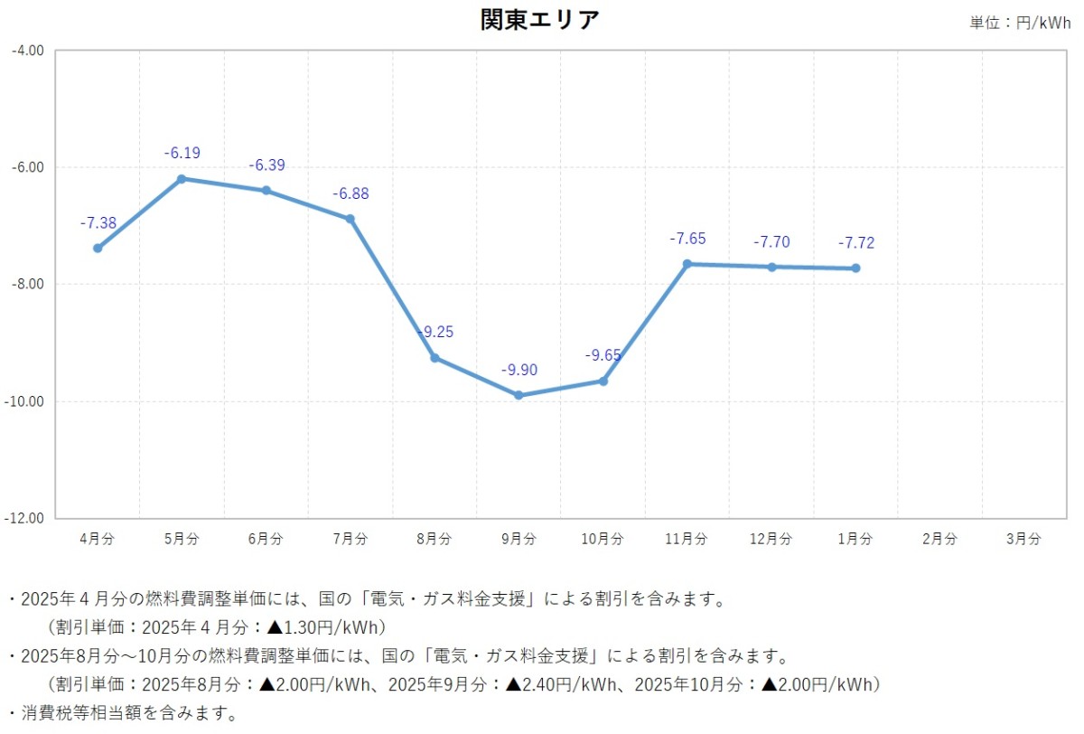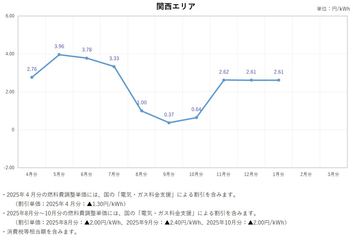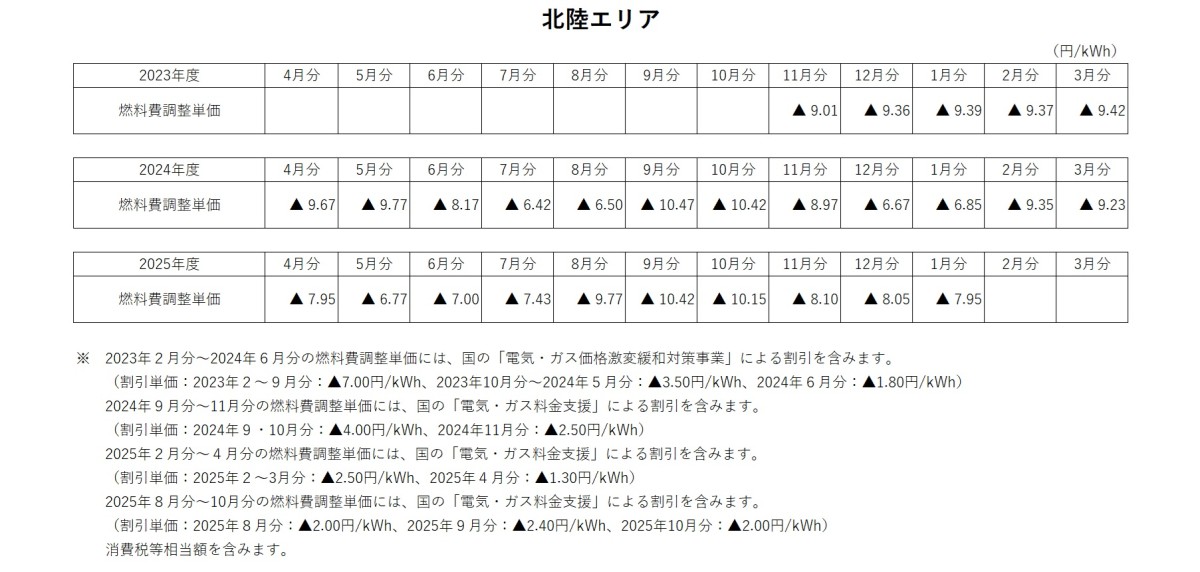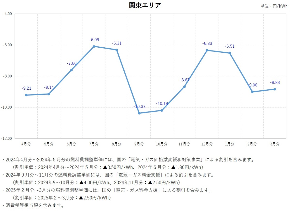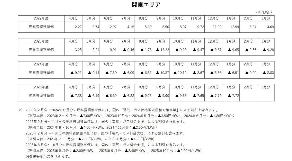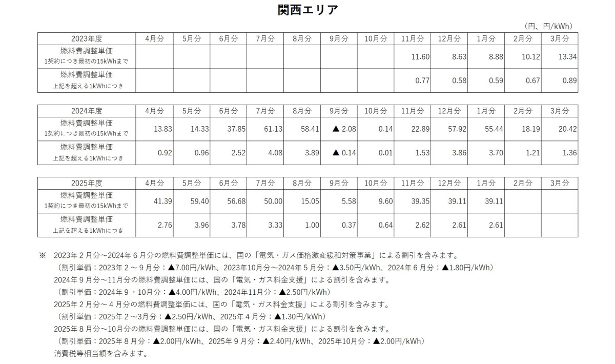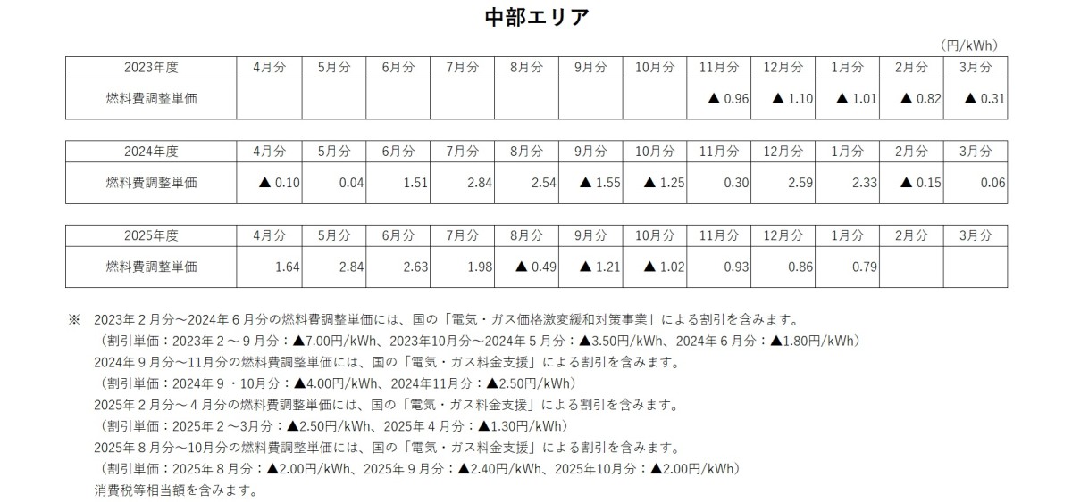 燃料費調整単価について トップ ご家庭のお客さま 燃料費調整単価について 電気料金の燃料費調整単価 燃料費調整単価一覧(表)【低圧】 燃料費調整単価一覧(グラフ:2025年度)【低圧】 北海道エリア 東北エリア 関東エリア 中部エリア 北陸エリア 関西エリア 中国エリア 四国エリア 燃料費調整単価一覧(グラフ:2024年度)【低圧】 北海道エリア 東北エリア 関東エリア 中部エリア 北陸エリア 関西エリア 中国エリア 四国エリア 燃料費調整単価一覧(グラフ:2023年度)【低圧】 北海道エリア 東北エリア 関東エリア 中部エリア 北陸エリア 関西エリア 中国エリア 四国エリア 燃料費調整単価一覧(表)【高圧・特別高圧】 燃料費調整単価一覧(グラフ)【高圧・特別高圧】 関東エリア(高圧) 関東エリア(特別高圧) 関西エリア(高圧) 関西エリア(特別高圧) 中国エリア(高圧) 中国エリア(特別高圧) 2025年度 2026年1月分燃料費調整単価(低圧) 2025年12月分燃料費調整単価(低圧) 2025年11月分燃料費調整単価(低圧) 2025年10月分燃料費調整単価(低圧) 2025年9月分燃料費調整単価(低圧) 2025年8月分燃料費調整単価(低圧) 2025年7月分燃料費調整単価(低圧) 2025年6月分燃料費調整単価(低圧) 2025年5月分燃料費調整単価(低圧) 2025年4月分燃料費調整単価(低圧) 2024年度 2025年3月分燃料費調整単価(低圧) 2025年2月分燃料費調整単価(低圧) 2025年1月分燃料費調整単価(低圧) 2024年12月分燃料費調整単価(低圧) 2024年11月分燃料費調整単価(低圧) 2024年10月分燃料費調整単価(低圧) 2024年9月分燃料費調整単価(低圧) 2024年8月分燃料費調整単価(関東エリア) 2024年8月分燃料費調整単価(低圧) 2024年7月分燃料費調整単価(関東エリア) 2024年7月分燃料費調整単価(低圧) 2024年6月分燃料費調整単価(関東エリア) 2024年6月分燃料費調整単価(低圧) 2024年5月分燃料費調整単価(関東エリア) 2024年5月分燃料費調整単価(関西エリア) 2024年5月分燃料費調整単価(中国エリア) 2024年5月分燃料費調整単価(低圧) 2024年4月分燃料費調整単価(関東エリア) 2024年4月分燃料費調整単価(関西エリア) 2024年4月分燃料費調整単価(中国エリア) 2024年4月分燃料費調整単価(低圧) 2023年度 2024年3月分燃料費調整単価(関東エリア) 2024年3月分燃料費調整単価(関西エリア) 2024年3月分燃料費調整単価(中国エリア) 2024年3月分燃料費調整単価(低圧) 2024年2月分燃料費調整単価(関東エリア) 2024年2月分燃料費調整単価(関西エリア) 2024年2月分燃料費調整単価(中国エリア) 2024年2月分燃料費調整単価(低圧) 2024年1月分燃料費調整単価(関東エリア) 2024年1月分燃料費調整単価(関西エリア) 2024年1月分燃料費調整単価(中国エリア) 2024年1月分燃料費調整単価(低圧) 2023年12月分燃料費調整単価(関東エリア) 2023年12月分燃料費調整単価(関西エリア) 2023年12月分燃料費調整単価(中国エリア) 2023年12月分燃料費調整単価(低圧) 2023年11月分燃料費調整単価(関東エリア) 2023年11月分燃料費調整単価(関西エリア) 2023年11月分燃料費調整単価(中国エリア) 2023年11月分燃料費調整単価(低圧) 2023年10月分燃料費調整単価(関東エリア) 2023年10月分燃料費調整単価(関西エリア) 2023年10月分燃料費調整単価(中国エリア) 2023年10月分燃料費調整単価(低圧) 2023年9月分燃料費調整単価(関東エリア) 2023年9月分燃料費調整単価(関西エリア) 2023年9月分燃料費調整単価(中国エリア) 2023年8月分燃料費調整単価(関東エリア) 2023年8月分燃料費調整単価(関西エリア) 2023年8月分燃料費調整単価(中国エリア) 2023年7月分燃料費調整単価(関東エリア) 2023年7月分燃料費調整単価(関西エリア) 2023年7月分燃料費調整単価(中国エリア) 2023年6月分燃料費調整単価(関東エリア) 2023年6月分燃料費調整単価(関西エリア) 2023年6月分燃料費調整単価(中国エリア) 2023年5月分燃料費調整単価(関東エリア) 2023年5月分燃料費調整単価(関西エリア) 2023年5月分燃料費調整単価(中国エリア) 2023年4月分燃料費調整単価(関東エリア) 2023年4月分燃料費調整単価(関西エリア) 2023年4月分燃料費調整単価(中国エリア) 2022年度 2023年3月分燃料費調整単価(関東エリア) 2023年3月分燃料費調整単価(関西エリア) 2023年2月分燃料費調整単価(関東エリア) 2023年2月分燃料費調整単価(関西エリア) 2023年1月分燃料費調整単価(関東エリア) 2023年1月分燃料費調整単価(関西エリア) 2022年12月分燃料費調整単価(関東エリア) 2022年12月分燃料費調整単価(関西エリア) 2022年11月分燃料費調整単価(関東エリア) 2022年11月分燃料費調整単価(関西エリア) 2022年10月分燃料費調整単価(関東エリア) 2022年10月分燃料費調整単価(関西エリア) 2022年9月分燃料費調整単価(関東エリア) 2022年9月分燃料費調整単価(関西エリア) 2022年8月分燃料費調整単価(関東エリア) 2022年8月分燃料費調整単価(関西エリア) 2022年7月分燃料費調整単価(関東エリア) 2022年7月分燃料費調整単価(関西エリア) 2022年6月分燃料費調整単価(関東エリア) 2022年6月分燃料費調整単価(関西エリア) 2022年5月分燃料費調整単価(関東エリア) 2022年5月分燃料費調整単価(関西エリア) 2022年4月分燃料費調整単価(関東エリア) 2022年4月分燃料費調整単価(関西