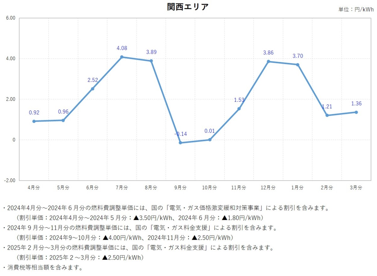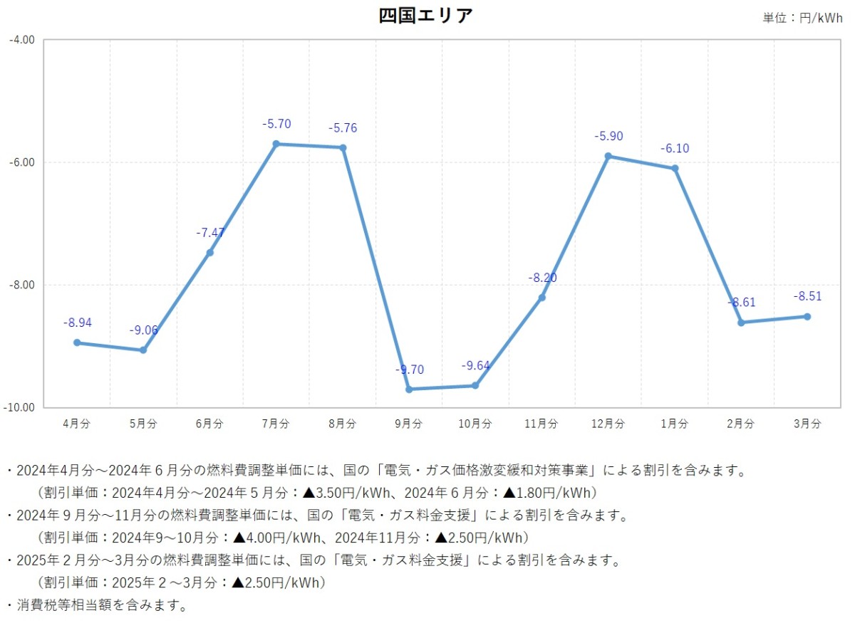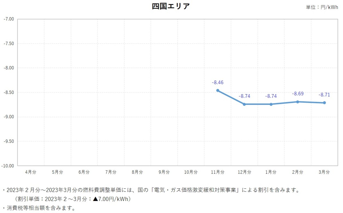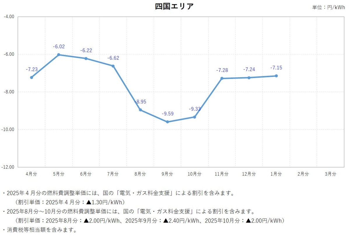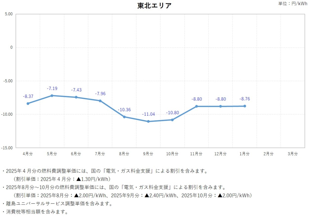 燃料費調整単価について トップ ご家庭のお客さま 燃料費調整単価について 電気料金の燃料費調整単価 燃料費調整単価一覧(表)【低圧】 燃料費調整単価一覧(グラフ:2025年度)【低圧】 北海道エリア 東北エリア 関東エリア 中部エリア 北陸エリア 関西エリア 中国エリア 四国エリア 燃料費調整単価一覧(グラフ:2024年度)【低圧】 北海道エリア 東北エリア 関東エリア 中部エリア 北陸エリア 関西エリア 中国エリア 四国エリア 燃料費調整単価一覧(グラフ:2023年度)【低圧】 北海道エリア 東北エリア 関東エリア 中部エリア 北陸エリア 関西エリア 中国エリア 四国エリア 燃料費調整単価一覧(表)【高圧・特別高圧】 燃料費調整単価一覧(グラフ)【高圧・特別高圧】 関東エリア(高圧) 関東エリア(特別高圧) 関西エリア(高圧) 関西エリア(特別高圧) 中国エリア(高圧) 中国エリア(特別高圧) 2025年度 2026年1月分燃料費調整単価(低圧) 2025年12月分燃料費調整単価(低圧) 2025年11月分燃料費調整単価(低圧) 2025年10月分燃料費調整単価(低圧) 2025年9月分燃料費調整単価(低圧) 2025年8月分燃料費調整単価(低圧) 2025年7月分燃料費調整単価(低圧) 2025年6月分燃料費調整単価(低圧) 2025年5月分燃料費調整単価(低圧) 2025年4月分燃料費調整単価(低圧) 2024年度 2025年3月分燃料費調整単価(低圧) 2025年2月分燃料費調整単価(低圧) 2025年1月分燃料費調整単価(低圧) 2024年12月分燃料費調整単価(低圧) 2024年11月分燃料費調整単価(低圧) 2024年10月分燃料費調整単価(低圧) 2024年9月分燃料費調整単価(低圧) 2024年8月分燃料費調整単価(関東エリア) 2024年8月分燃料費調整単価(低圧) 2024年7月分燃料費調整単価(関東エリア) 2024年7月分燃料費調整単価(低圧) 2024年6月分燃料費調整単価(関東エリア) 2024年6月分燃料費調整単価(低圧) 2024年5月分燃料費調整単価(関東エリア) 2024年5月分燃料費調整単価(関西エリア) 2024年5月分燃料費調整単価(中国エリア) 2024年5月分燃料費調整単価(低圧) 2024年4月分燃料費調整単価(関東エリア) 2024年4月分燃料費調整単価(関西エリア) 2024年4月分燃料費調整単価(中国エリア) 2024年4月分燃料費調整単価(低圧) 2023年度 2024年3月分燃料費調整単価(関東エリア) 2024年3月分燃料費調整単価(関西エリア) 2024年3月分燃料費調整単価(中国エリア) 2024年3月分燃料費調整単価(低圧) 2024年2月分燃料費調整単価(関東エリア) 2024年2月分燃料費調整単価(関西エリア) 2024年2月分燃料費調整単価(中国エリア) 2024年2月分燃料費調整単価(低圧) 2024年1月分燃料費調整単価(関東エリア) 2024年1月分燃料費調整単価(関西エリア) 2024年1月分燃料費調整単価(中国エリア) 2024年1月分燃料費調整単価(低圧) 2023年12月分燃料費調整単価(関東エリア) 2023年12月分燃料費調整単価(関西エリア) 2023年12月分燃料費調整単価(中国エリア) 2023年12月分燃料費調整単価(低圧) 2023年11月分燃料費調整単価(関東エリア) 2023年11月分燃料費調整単価(関西エリア) 2023年11月分燃料費調整単価(中国エリア) 2023年11月分燃料費調整単価(低圧) 2023年10月分燃料費調整単価(関東エリア) 2023年10月分燃料費調整単価(関西エリア) 2023年10月分燃料費調整単価(中国エリア) 2023年10月分燃料費調整単価(低圧) 2023年9月分燃料費調整単価(関東エリア) 2023年9月分燃料費調整単価(関西エリア) 2023年9月分燃料費調整単価(中国エリア) 2023年8月分燃料費調整単価(関東エリア) 2023年8月分燃料費調整単価(関西エリア) 2023年8月分燃料費調整単価(中国エリア) 2023年7月分燃料費調整単価(関東エリア) 2023年7月分燃料費調整単価(関西エリア) 2023年7月分燃料費調整単価(中国エリア) 2023年6月分燃料費調整単価(関東エリア) 2023年6月分燃料費調整単価(関西エリア) 2023年6月分燃料費調整単価(中国エリア) 2023年5月分燃料費調整単価(関東エリア) 2023年5月分燃料費調整単価(関西エリア) 2023年5月分燃料費調整単価(中国エリア) 2023年4月分燃料費調整単価(関東エリア) 2023年4月分燃料費調整単価(関西エリア) 2023年4月分燃料費調整単価(中国エリア) 2022年度 2023年3月分燃料費調整単価(関東エリア) 2023年3月分燃料費調整単価(関西エリア) 2023年2月分燃料費調整単価(関東エリア) 2023年2月分燃料費調整単価(関西エリア) 2023年1月分燃料費調整単価(関東エリア) 2023年1月分燃料費調整単価(関西エリア) 2022年12月分燃料費調整単価(関東エリア) 2022年12月分燃料費調整単価(関西エリア) 2022年11月分燃料費調整単価(関東エリア) 2022年11月分燃料費調整単価(関西エリア) 2022年10月分燃料費調整単価(関東エリア) 2022年10月分燃料費調整単価(関西エリア) 2022年9月分燃料費調整単価(関東エリア) 2022年9月分燃料費調整単価(関西エリア) 2022年8月分燃料費調整単価(関東エリア) 2022年8月分燃料費調整単価(関西エリア) 2022年7月分燃料費調整単価(関東エリア) 2022年7月分燃料費調整単価(関西エリア) 2022年6月分燃料費調整単価(関東エリア) 2022年6月分燃料費調整単価(関西エリア) 2022年5月分燃料費調整単価(関東エリア) 2022年5月分燃料費調整単価(関西エリア) 2022年4月分燃料費調整単価(関東エリア) 2022年4月分燃料費調整単価(関西