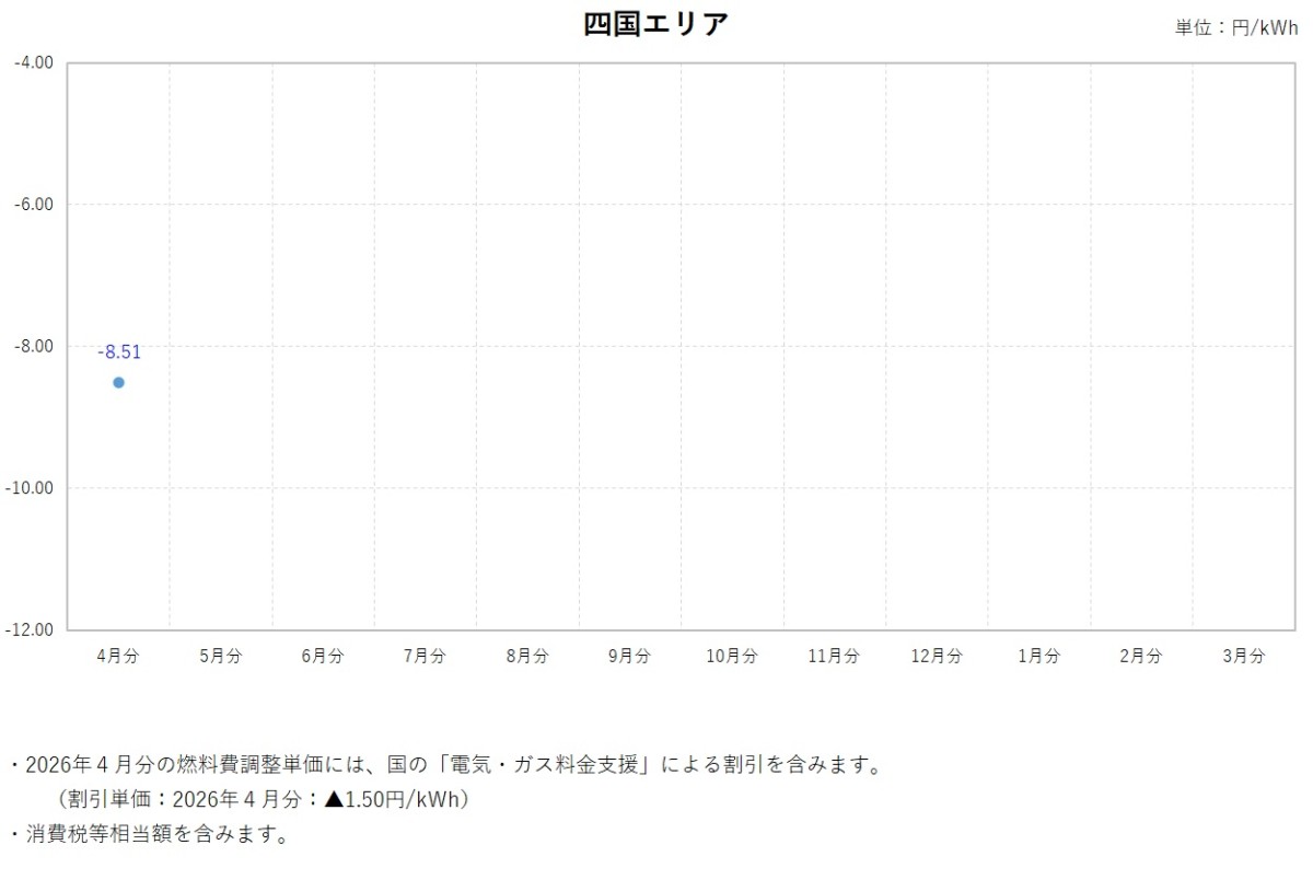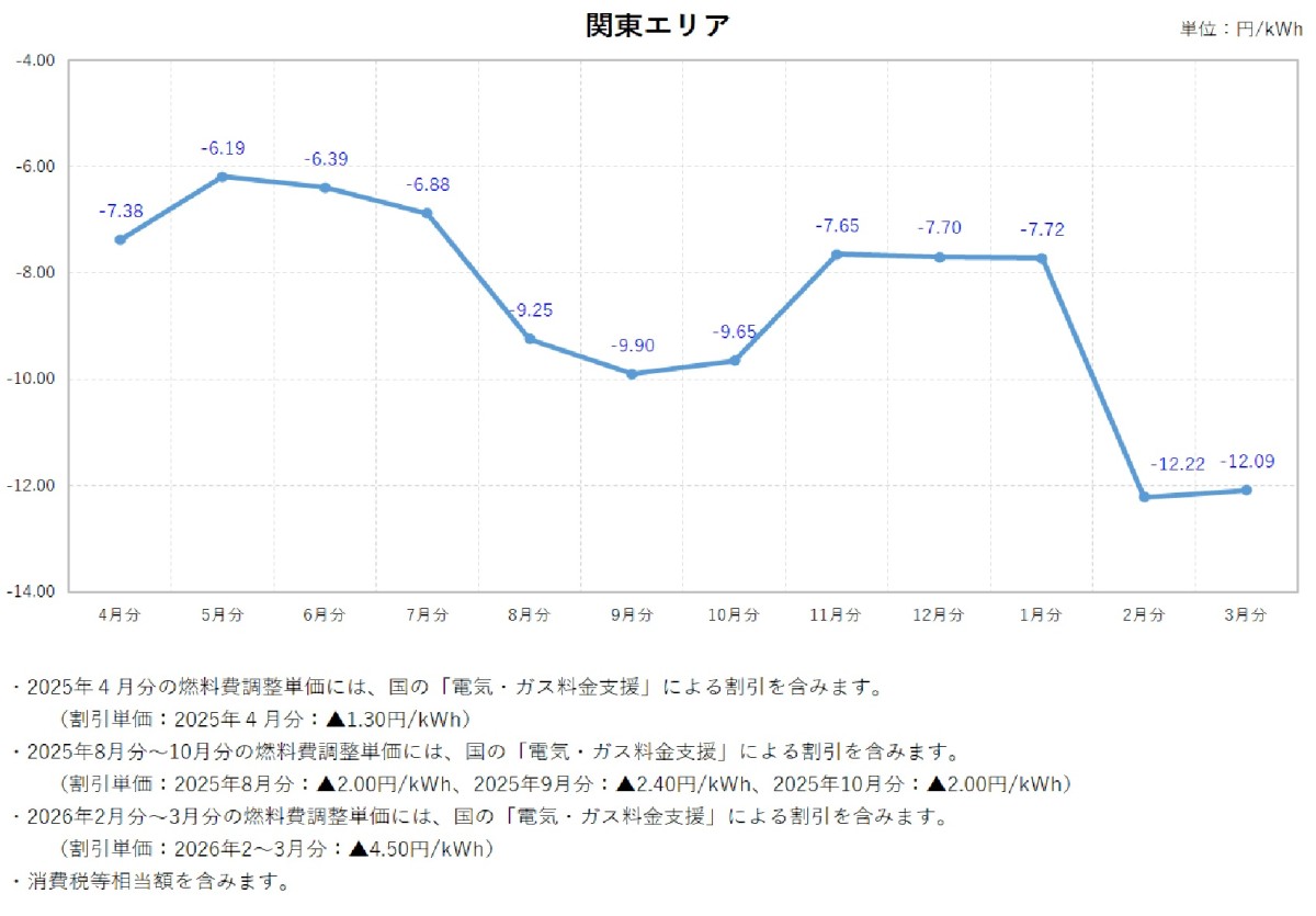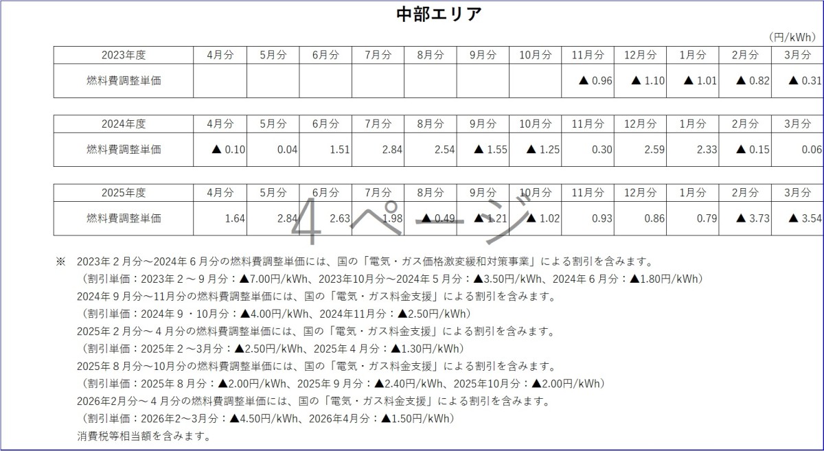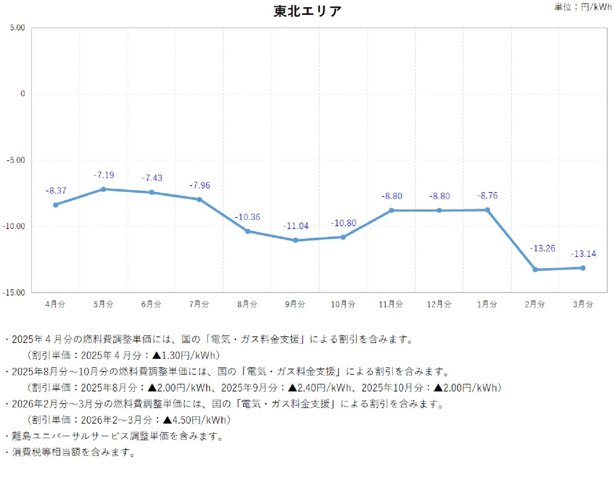 燃料費調整単価について トップ ご家庭のお客さま 燃料費調整単価について 電気料金の燃料費調整単価 燃料費調整単価一覧(表)【低圧】 燃料費調整単価一覧(グラフ:2025年度)【低圧】 北海道エリア 東北エリア 関東エリア 中部エリア 北陸エリア 関西エリア 中国エリア 四国エリア 燃料費調整単価一覧(グラフ:2024年度)【低圧】 北海道エリア 東北エリア 関東エリア 中部エリア 北陸エリア 関西エリア 中国エリア 四国エリア 燃料費調整単価一覧(グラフ:2023年度)【低圧】 北海道エリア 東北エリア 関東エリア 中部エリア 北陸エリア 関西エリア 中国エリア 四国エリア 燃料費調整単価一覧(表)【高圧・特別高圧】 燃料費調整単価一覧(グラフ)【高圧・特別高圧】 関東エリア(高圧) 関東エリア(特別高圧) 関西エリア(高圧) 関西エリア(特別高圧) 中国エリア(高圧) 中国エリア(特別高圧) 2025年度 2026年3月分燃料費調整単価(低圧) 2026年2月分燃料費調整単価(低圧) 2026年1月分燃料費調整単価(低圧) 2025年12月分燃料費調整単価(低圧) 2025年11月分燃料費調整単価(低圧) 2025年10月分燃料費調整単価(低圧) 2025年9月分燃料費調整単価(低圧) 2025年8月分燃料費調整単価(低圧) 2025年7月分燃料費調整単価(低圧) 2025年6月分燃料費調整単価(低圧) 2025年5月分燃料費調整単価(低圧) 2025年4月分燃料費調整単価(低圧) 2024年度 2025年3月分燃料費調整単価(低圧) 2025年2月分燃料費調整単価(低圧) 2025年1月分燃料費調整単価(低圧) 2024年12月分燃料費調整単価(低圧) 2024年11月分燃料費調整単価(低圧) 2024年10月分燃料費調整単価(低圧) 2024年9月分燃料費調整単価(低圧) 2024年8月分燃料費調整単価(関東エリア) 2024年8月分燃料費調整単価(低圧) 2024年7月分燃料費調整単価(関東エリア) 2024年7月分燃料費調整単価(低圧) 2024年6月分燃料費調整単価(関東エリア) 2024年6月分燃料費調整単価(低圧) 2024年5月分燃料費調整単価(関東エリア) 2024年5月分燃料費調整単価(関西エリア) 2024年5月分燃料費調整単価(中国エリア) 2024年5月分燃料費調整単価(低圧) 2024年4月分燃料費調整単価(関東エリア) 2024年4月分燃料費調整単価(関西エリア) 2024年4月分燃料費調整単価(中国エリア) 2024年4月分燃料費調整単価(低圧) 2023年度 2024年3月分燃料費調整単価(関東エリア) 2024年3月分燃料費調整単価(関西エリア) 2024年3月分燃料費調整単価(中国エリア) 2024年3月分燃料費調整単価(低圧) 2024年2月分燃料費調整単価(関東エリア) 2024年2月分燃料費調整単価(関西エリア) 2024年2月分燃料費調整単価(中国エリア) 2024年2月分燃料費調整単価(低圧) 2024年1月分燃料費調整単価(関東エリア) 2024年1月分燃料費調整単価(関西エリア) 2024年1月分燃料費調整単価(中国エリア) 2024年1月分燃料費調整単価(低圧) 2023年12月分燃料費調整単価(関東エリア) 2023年12月分燃料費調整単価(関西エリア) 2023年12月分燃料費調整単価(中国エリア) 2023年12月分燃料費調整単価(低圧) 2023年11月分燃料費調整単価(関東エリア) 2023年11月分燃料費調整単価(関西エリア) 2023年11月分燃料費調整単価(中国エリア) 2023年11月分燃料費調整単価(低圧) 2023年10月分燃料費調整単価(関東エリア) 2023年10月分燃料費調整単価(関西エリア) 2023年10月分燃料費調整単価(中国エリア) 2023年10月分燃料費調整単価(低圧) 2023年9月分燃料費調整単価(関東エリア) 2023年9月分燃料費調整単価(関西エリア) 2023年9月分燃料費調整単価(中国エリア) 2023年8月分燃料費調整単価(関東エリア) 2023年8月分燃料費調整単価(関西エリア) 2023年8月分燃料費調整単価(中国エリア) 2023年7月分燃料費調整単価(関東エリア) 2023年7月分燃料費調整単価(関西エリア) 2023年7月分燃料費調整単価(中国エリア) 2023年6月分燃料費調整単価(関東エリア) 2023年6月分燃料費調整単価(関西エリア) 2023年6月分燃料費調整単価(中国エリア) 2023年5月分燃料費調整単価(関東エリア) 2023年5月分燃料費調整単価(関西エリア) 2023年5月分燃料費調整単価(中国エリア) 2023年4月分燃料費調整単価(関東エリア) 2023年4月分燃料費調整単価(関西エリア) 2023年4月分燃料費調整単価(中国エリア) 2022年度 2023年3月分燃料費調整単価(関東エリア) 2023年3月分燃料費調整単価(関西エリア) 2023年2月分燃料費調整単価(関東エリア) 2023年2月分燃料費調整単価(関西エリア) 2023年1月分燃料費調整単価(関東エリア) 2023年1月分燃料費調整単価(関西エリア) 2022年12月分燃料費調整単価(関東エリア) 2022年12月分燃料費調整単価(関西エリア) 2022年11月分燃料費調整単価(関東エリア) 2022年11月分燃料費調整単価(関西エリア) 2022年10月分燃料費調整単価(関東エリア) 2022年10月分燃料費調整単価(関西エリア) 2022年9月分燃料費調整単価(関東エリア) 2022年9月分燃料費調整単価(関西エリア) 2022年8月分燃料費調整単価(関東エリア) 2022年8月分燃料費調整単価(関西エリア) 2022年7月分燃料費調整単価(関東エリア) 2022年7月分燃料費調整単価(関西エリア) 2022年6月分燃料費調整単価(関東エリア) 2022年6月分燃料費調整単価(関西エリア) 2022年5月分燃料費調整単価(関東エリア) 2022年5月分燃料費調整単価(関西エリア) 2022年4