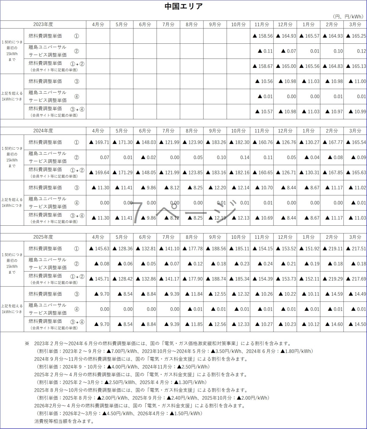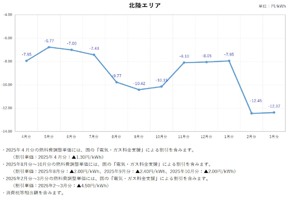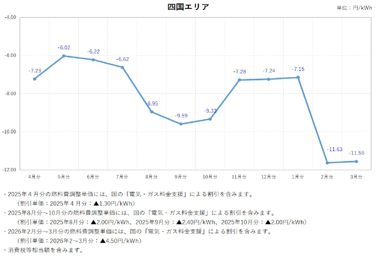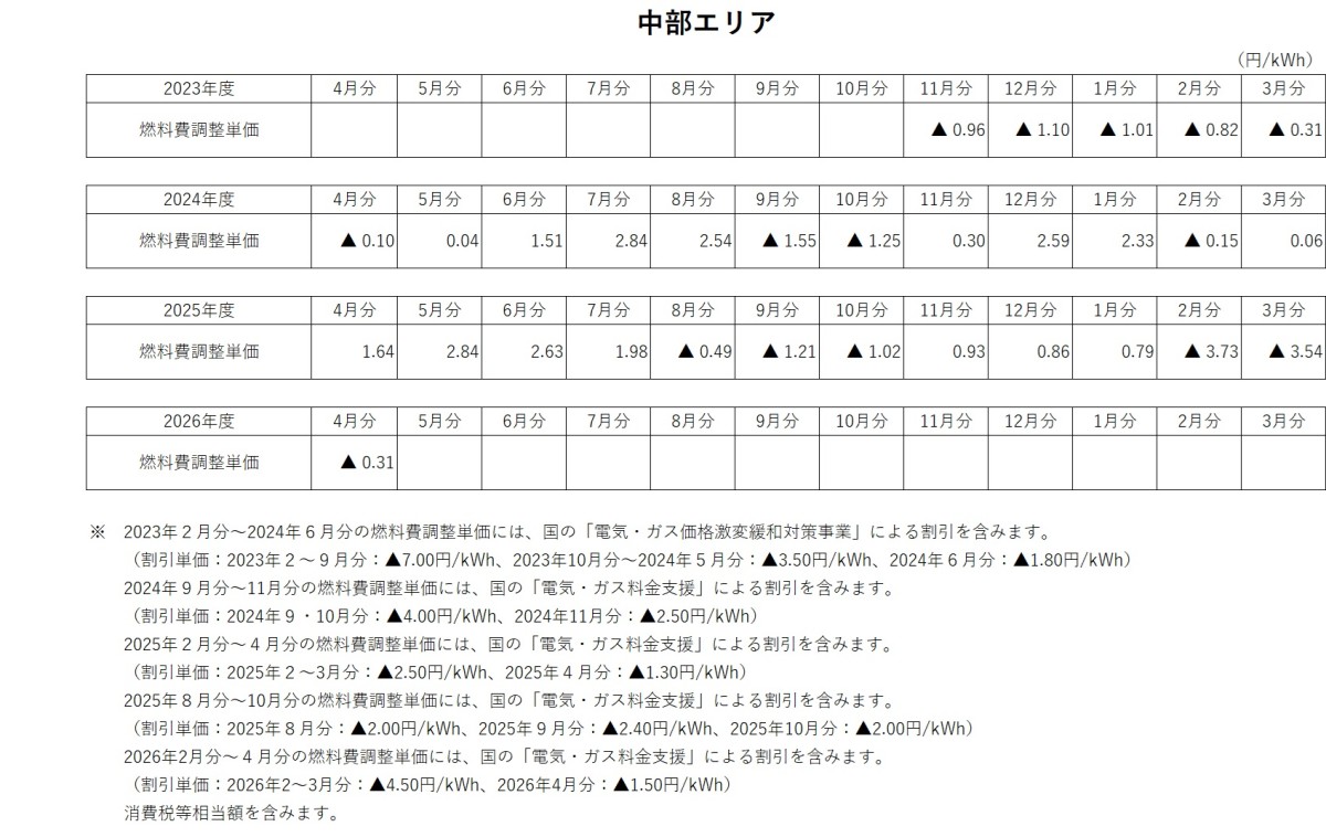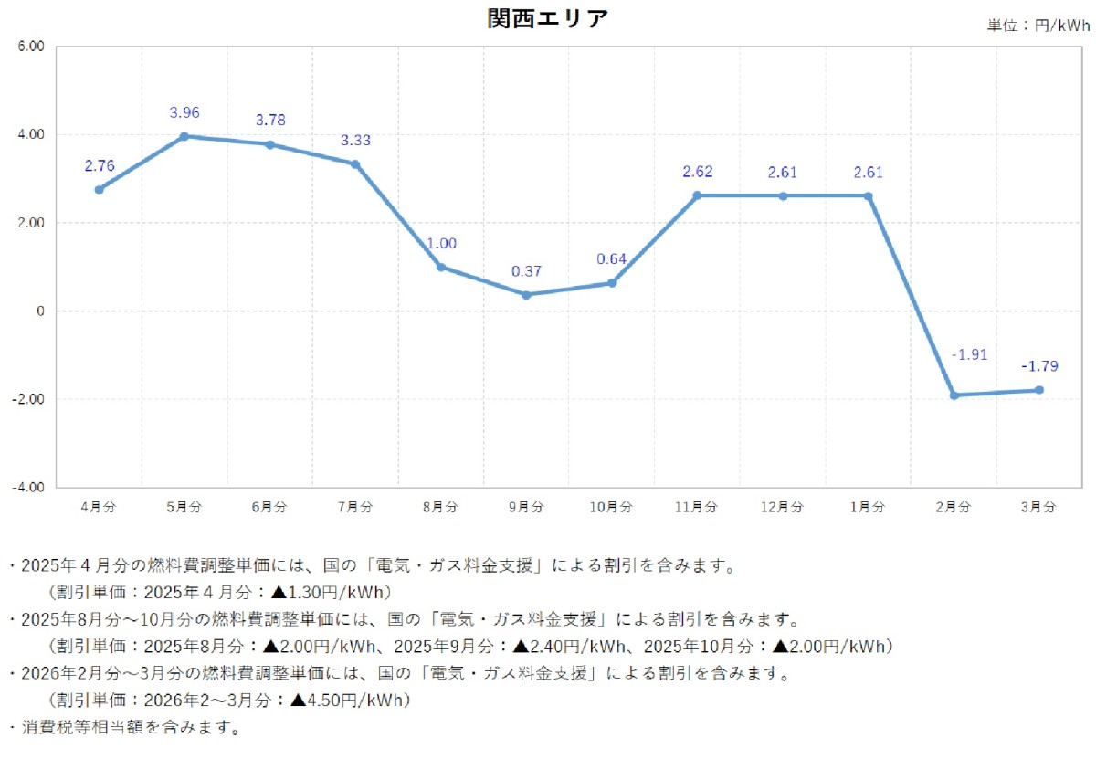 燃料費調整単価について トップ ご家庭のお客さま 燃料費調整単価について 電気料金の燃料費調整単価 燃料費調整単価一覧(表)【低圧】 燃料費調整単価一覧(グラフ:2025年度)【低圧】 北海道エリア 東北エリア 関東エリア 中部エリア 北陸エリア 関西エリア 中国エリア 四国エリア 燃料費調整単価一覧(グラフ:2024年度)【低圧】 北海道エリア 東北エリア 関東エリア 中部エリア 北陸エリア 関西エリア 中国エリア 四国エリア 燃料費調整単価一覧(グラフ:2023年度)【低圧】 北海道エリア 東北エリア 関東エリア 中部エリア 北陸エリア 関西エリア 中国エリア 四国エリア 燃料費調整単価一覧(表)【高圧・特別高圧】 燃料費調整単価一覧(グラフ)【高圧・特別高圧】 関東エリア(高圧) 関東エリア(特別高圧) 関西エリア(高圧) 関西エリア(特別高圧) 中国エリア(高圧) 中国エリア(特別高圧) 2025年度 2026年3月分燃料費調整単価(低圧) 2026年2月分燃料費調整単価(低圧) 2026年1月分燃料費調整単価(低圧) 2025年12月分燃料費調整単価(低圧) 2025年11月分燃料費調整単価(低圧) 2025年10月分燃料費調整単価(低圧) 2025年9月分燃料費調整単価(低圧) 2025年8月分燃料費調整単価(低圧) 2025年7月分燃料費調整単価(低圧) 2025年6月分燃料費調整単価(低圧) 2025年5月分燃料費調整単価(低圧) 2025年4月分燃料費調整単価(低圧) 2024年度 2025年3月分燃料費調整単価(低圧) 2025年2月分燃料費調整単価(低圧) 2025年1月分燃料費調整単価(低圧) 2024年12月分燃料費調整単価(低圧) 2024年11月分燃料費調整単価(低圧) 2024年10月分燃料費調整単価(低圧) 2024年9月分燃料費調整単価(低圧) 2024年8月分燃料費調整単価(関東エリア) 2024年8月分燃料費調整単価(低圧) 2024年7月分燃料費調整単価(関東エリア) 2024年7月分燃料費調整単価(低圧) 2024年6月分燃料費調整単価(関東エリア) 2024年6月分燃料費調整単価(低圧) 2024年5月分燃料費調整単価(関東エリア) 2024年5月分燃料費調整単価(関西エリア) 2024年5月分燃料費調整単価(中国エリア) 2024年5月分燃料費調整単価(低圧) 2024年4月分燃料費調整単価(関東エリア) 2024年4月分燃料費調整単価(関西エリア) 2024年4月分燃料費調整単価(中国エリア) 2024年4月分燃料費調整単価(低圧) 2023年度 2024年3月分燃料費調整単価(関東エリア) 2024年3月分燃料費調整単価(関西エリア) 2024年3月分燃料費調整単価(中国エリア) 2024年3月分燃料費調整単価(低圧) 2024年2月分燃料費調整単価(関東エリア) 2024年2月分燃料費調整単価(関西エリア) 2024年2月分燃料費調整単価(中国エリア) 2024年2月分燃料費調整単価(低圧) 2024年1月分燃料費調整単価(関東エリア) 2024年1月分燃料費調整単価(関西エリア) 2024年1月分燃料費調整単価(中国エリア) 2024年1月分燃料費調整単価(低圧) 2023年12月分燃料費調整単価(関東エリア) 2023年12月分燃料費調整単価(関西エリア) 2023年12月分燃料費調整単価(中国エリア) 2023年12月分燃料費調整単価(低圧) 2023年11月分燃料費調整単価(関東エリア) 2023年11月分燃料費調整単価(関西エリア) 2023年11月分燃料費調整単価(中国エリア) 2023年11月分燃料費調整単価(低圧) 2023年10月分燃料費調整単価(関東エリア) 2023年10月分燃料費調整単価(関西エリア) 2023年10月分燃料費調整単価(中国エリア) 2023年10月分燃料費調整単価(低圧) 2023年9月分燃料費調整単価(関東エリア) 2023年9月分燃料費調整単価(関西エリア) 2023年9月分燃料費調整単価(中国エリア) 2023年8月分燃料費調整単価(関東エリア) 2023年8月分燃料費調整単価(関西エリア) 2023年8月分燃料費調整単価(中国エリア) 2023年7月分燃料費調整単価(関東エリア) 2023年7月分燃料費調整単価(関西エリア) 2023年7月分燃料費調整単価(中国エリア) 2023年6月分燃料費調整単価(関東エリア) 2023年6月分燃料費調整単価(関西エリア) 2023年6月分燃料費調整単価(中国エリア) 2023年5月分燃料費調整単価(関東エリア) 2023年5月分燃料費調整単価(関西エリア) 2023年5月分燃料費調整単価(中国エリア) 2023年4月分燃料費調整単価(関東エリア) 2023年4月分燃料費調整単価(関西エリア) 2023年4月分燃料費調整単価(中国エリア) 2022年度 2023年3月分燃料費調整単価(関東エリア) 2023年3月分燃料費調整単価(関西エリア) 2023年2月分燃料費調整単価(関東エリア) 2023年2月分燃料費調整単価(関西エリア) 2023年1月分燃料費調整単価(関東エリア) 2023年1月分燃料費調整単価(関西エリア) 2022年12月分燃料費調整単価(関東エリア) 2022年12月分燃料費調整単価(関西エリア) 2022年11月分燃料費調整単価(関東エリア) 2022年11月分燃料費調整単価(関西エリア) 2022年10月分燃料費調整単価(関東エリア) 2022年10月分燃料費調整単価(関西エリア) 2022年9月分燃料費調整単価(関東エリア) 2022年9月分燃料費調整単価(関西エリア) 2022年8月分燃料費調整単価(関東エリア) 2022年8月分燃料費調整単価(関西エリア) 2022年7月分燃料費調整単価(関東エリア) 2022年7月分燃料費調整単価(関西エリア) 2022年6月分燃料費調整単価(関東エリア) 2022年6月分燃料費調整単価(関西エリア) 2022年5月分燃料費調整単価(関東エリア) 2022年5月分燃料費調整単価(関西エリア) 2022年4