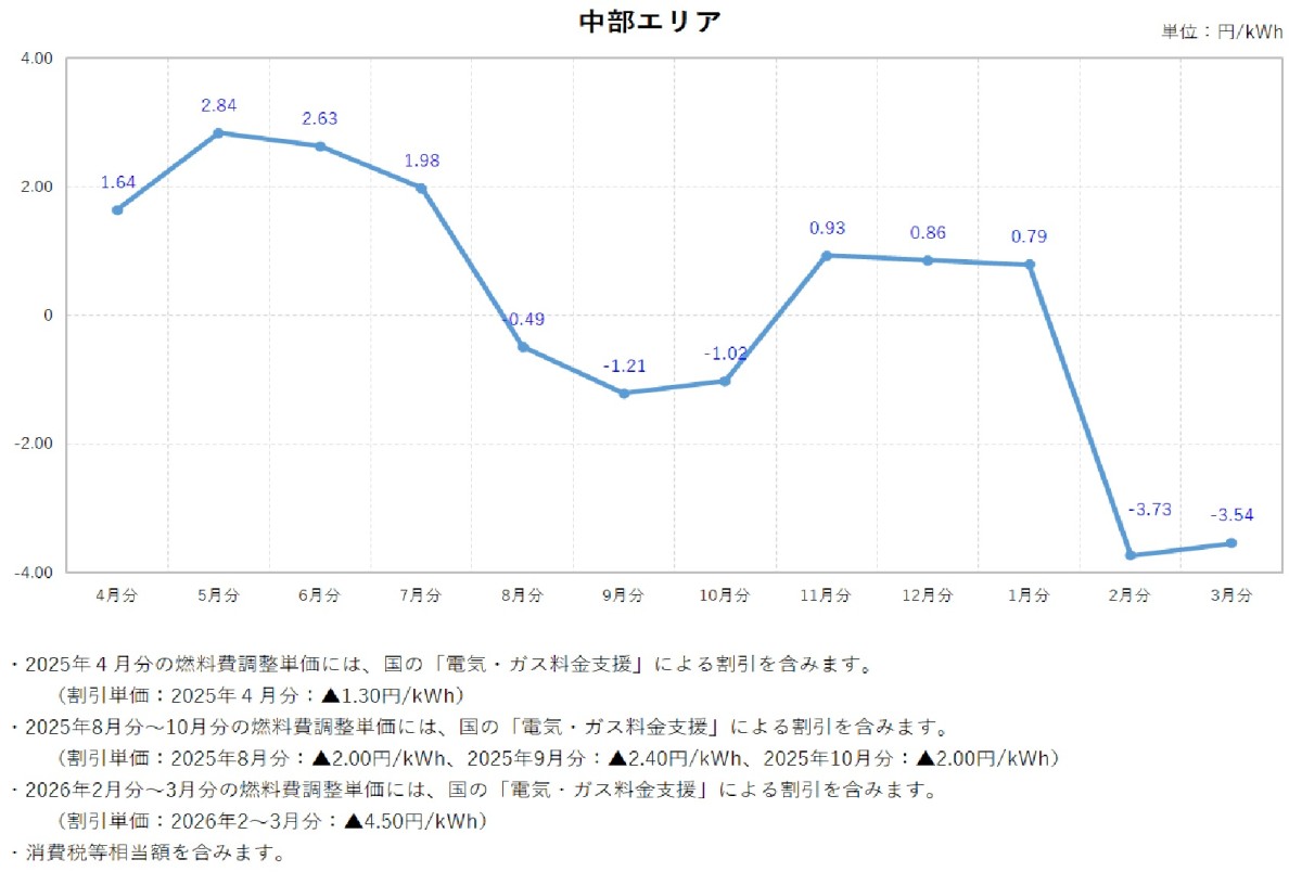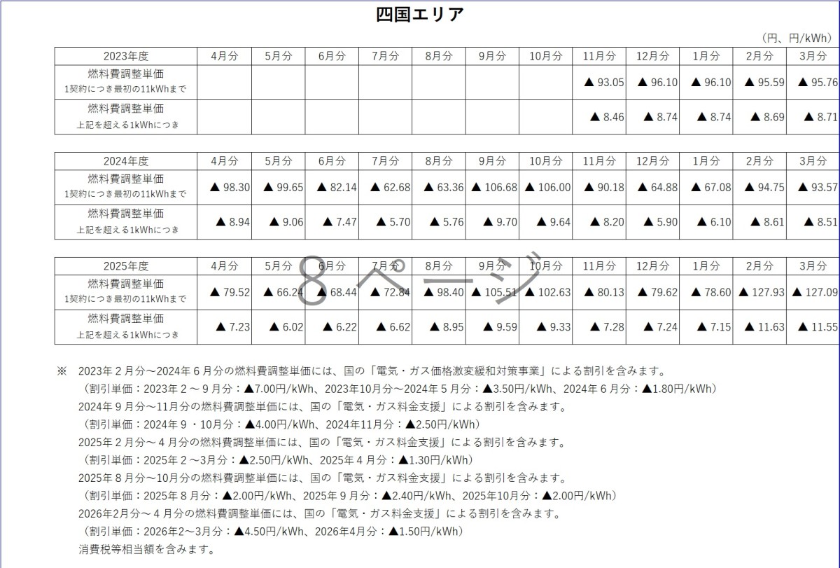 燃料費調整単価について トップ ご家庭のお客さま 燃料費調整単価について 電気料金の燃料費調整単価 燃料費調整単価一覧(表)【低圧】 燃料費調整単価一覧(グラフ:2025年度)【低圧】 北海道エリア 東北エリア 関東エリア 中部エリア 北陸エリア 関西エリア 中国エリア 四国エリア 燃料費調整単価一覧(グラフ:2024年度)【低圧】 北海道エリア 東北エリア 関東エリア 中部エリア 北陸エリア 関西エリア 中国エリア 四国エリア 燃料費調整単価一覧(グラフ:2023年度)【低圧】 北海道エリア 東北エリア 関東エリア 中部エリア 北陸エリア 関西エリア 中国エリア 四国エリア 燃料費調整単価一覧(表)【高圧・特別高圧】 燃料費調整単価一覧(グラフ)【高圧・特別高圧】 関東エリア(高圧) 関東エリア(特別高圧) 関西エリア(高圧) 関西エリア(特別高圧) 中国エリア(高圧) 中国エリア(特別高圧) 2025年度 2026年3月分燃料費調整単価(低圧) 2026年2月分燃料費調整単価(低圧) 2026年1月分燃料費調整単価(低圧) 2025年12月分燃料費調整単価(低圧) 2025年11月分燃料費調整単価(低圧) 2025年10月分燃料費調整単価(低圧) 2025年9月分燃料費調整単価(低圧) 2025年8月分燃料費調整単価(低圧) 2025年7月分燃料費調整単価(低圧) 2025年6月分燃料費調整単価(低圧) 2025年5月分燃料費調整単価(低圧) 2025年4月分燃料費調整単価(低圧) 2024年度 2025年3月分燃料費調整単価(低圧) 2025年2月分燃料費調整単価(低圧) 2025年1月分燃料費調整単価(低圧) 2024年12月分燃料費調整単価(低圧) 2024年11月分燃料費調整単価(低圧) 2024年10月分燃料費調整単価(低圧) 2024年9月分燃料費調整単価(低圧) 2024年8月分燃料費調整単価(関東エリア) 2024年8月分燃料費調整単価(低圧) 2024年7月分燃料費調整単価(関東エリア) 2024年7月分燃料費調整単価(低圧) 2024年6月分燃料費調整単価(関東エリア) 2024年6月分燃料費調整単価(低圧) 2024年5月分燃料費調整単価(関東エリア) 2024年5月分燃料費調整単価(関西エリア) 2024年5月分燃料費調整単価(中国エリア) 2024年5月分燃料費調整単価(低圧) 2024年4月分燃料費調整単価(関東エリア) 2024年4月分燃料費調整単価(関西エリア) 2024年4月分燃料費調整単価(中国エリア) 2024年4月分燃料費調整単価(低圧) 2023年度 2024年3月分燃料費調整単価(関東エリア) 2024年3月分燃料費調整単価(関西エリア) 2024年3月分燃料費調整単価(中国エリア) 2024年3月分燃料費調整単価(低圧) 2024年2月分燃料費調整単価(関東エリア) 2024年2月分燃料費調整単価(関西エリア) 2024年2月分燃料費調整単価(中国エリア) 2024年2月分燃料費調整単価(低圧) 2024年1月分燃料費調整単価(関東エリア) 2024年1月分燃料費調整単価(関西エリア) 2024年1月分燃料費調整単価(中国エリア) 2024年1月分燃料費調整単価(低圧) 2023年12月分燃料費調整単価(関東エリア) 2023年12月分燃料費調整単価(関西エリア) 2023年12月分燃料費調整単価(中国エリア) 2023年12月分燃料費調整単価(低圧) 2023年11月分燃料費調整単価(関東エリア) 2023年11月分燃料費調整単価(関西エリア) 2023年11月分燃料費調整単価(中国エリア) 2023年11月分燃料費調整単価(低圧) 2023年10月分燃料費調整単価(関東エリア) 2023年10月分燃料費調整単価(関西エリア) 2023年10月分燃料費調整単価(中国エリア) 2023年10月分燃料費調整単価(低圧) 2023年9月分燃料費調整単価(関東エリア) 2023年9月分燃料費調整単価(関西エリア) 2023年9月分燃料費調整単価(中国エリア) 2023年8月分燃料費調整単価(関東エリア) 2023年8月分燃料費調整単価(関西エリア) 2023年8月分燃料費調整単価(中国エリア) 2023年7月分燃料費調整単価(関東エリア) 2023年7月分燃料費調整単価(関西エリア) 2023年7月分燃料費調整単価(中国エリア) 2023年6月分燃料費調整単価(関東エリア) 2023年6月分燃料費調整単価(関西エリア) 2023年6月分燃料費調整単価(中国エリア) 2023年5月分燃料費調整単価(関東エリア) 2023年5月分燃料費調整単価(関西エリア) 2023年5月分燃料費調整単価(中国エリア) 2023年4月分燃料費調整単価(関東エリア) 2023年4月分燃料費調整単価(関西エリア) 2023年4月分燃料費調整単価(中国エリア) 2022年度 2023年3月分燃料費調整単価(関東エリア) 2023年3月分燃料費調整単価(関西エリア) 2023年2月分燃料費調整単価(関東エリア) 2023年2月分燃料費調整単価(関西エリア) 2023年1月分燃料費調整単価(関東エリア) 2023年1月分燃料費調整単価(関西エリア) 2022年12月分燃料費調整単価(関東エリア) 2022年12月分燃料費調整単価(関西エリア) 2022年11月分燃料費調整単価(関東エリア) 2022年11月分燃料費調整単価(関西エリア) 2022年10月分燃料費調整単価(関東エリア) 2022年10月分燃料費調整単価(関西エリア) 2022年9月分燃料費調整単価(関東エリア) 2022年9月分燃料費調整単価(関西エリア) 2022年8月分燃料費調整単価(関東エリア) 2022年8月分燃料費調整単価(関西エリア) 2022年7月分燃料費調整単価(関東エリア) 2022年7月分燃料費調整単価(関西エリア) 2022年6月分燃料費調整単価(関東エリア) 2022年6月分燃料費調整単価(関西エリア) 2022年5月分燃料費調整単価(関東エリア) 2022年5月分燃料費調整単価(関西エリア) 2022年4